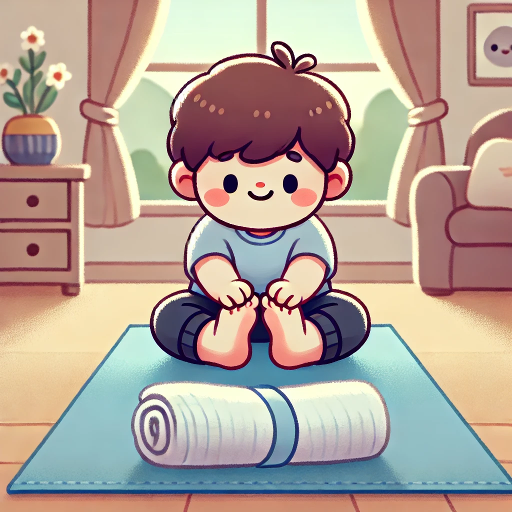 • 바닥에 수건을 펴고, 발가락으로 쥐었다 펴기를 반복해요.