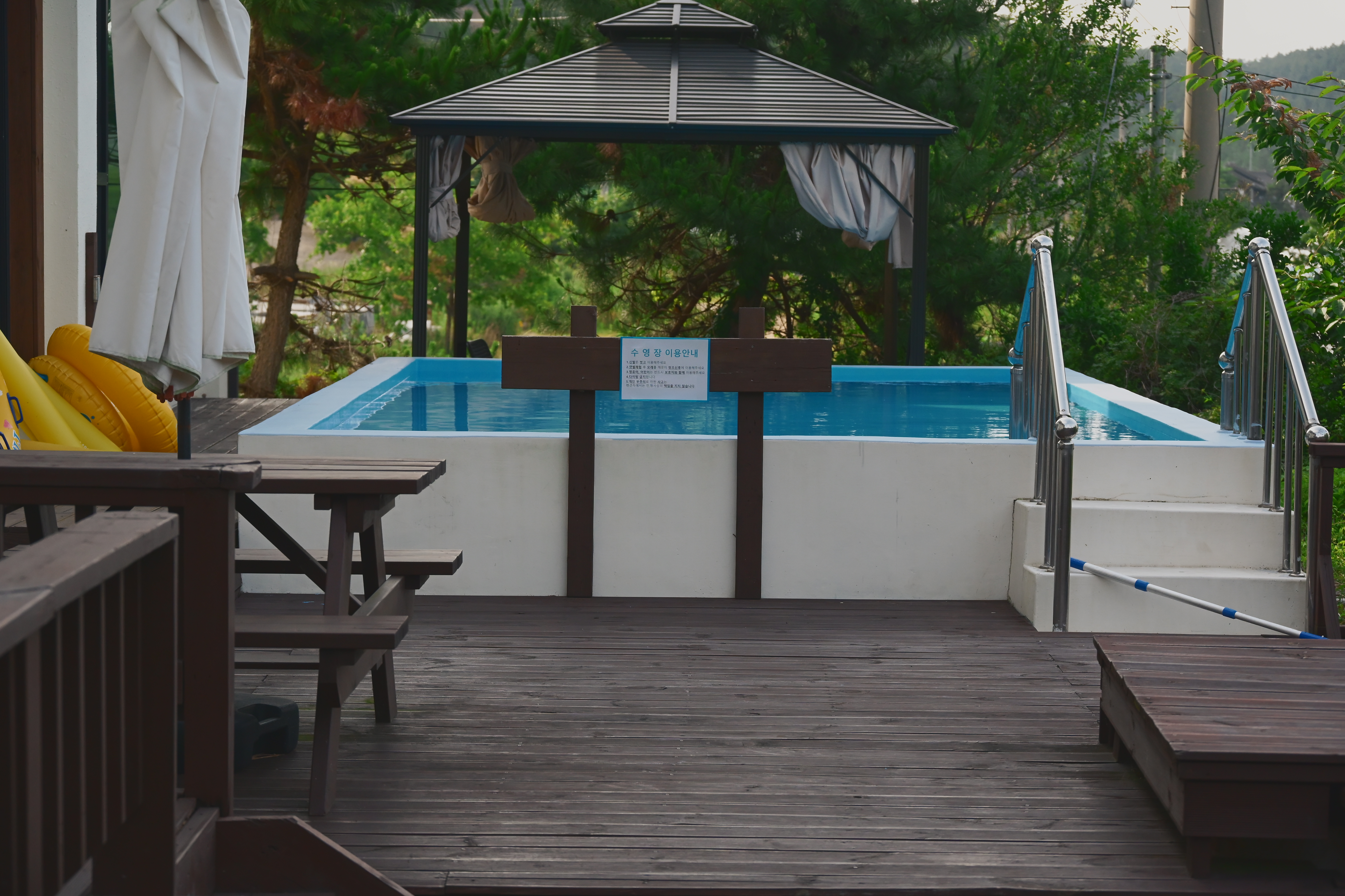 아이들 튜브까지 제공되고, 수영장 물도 관리되어 있었어요.