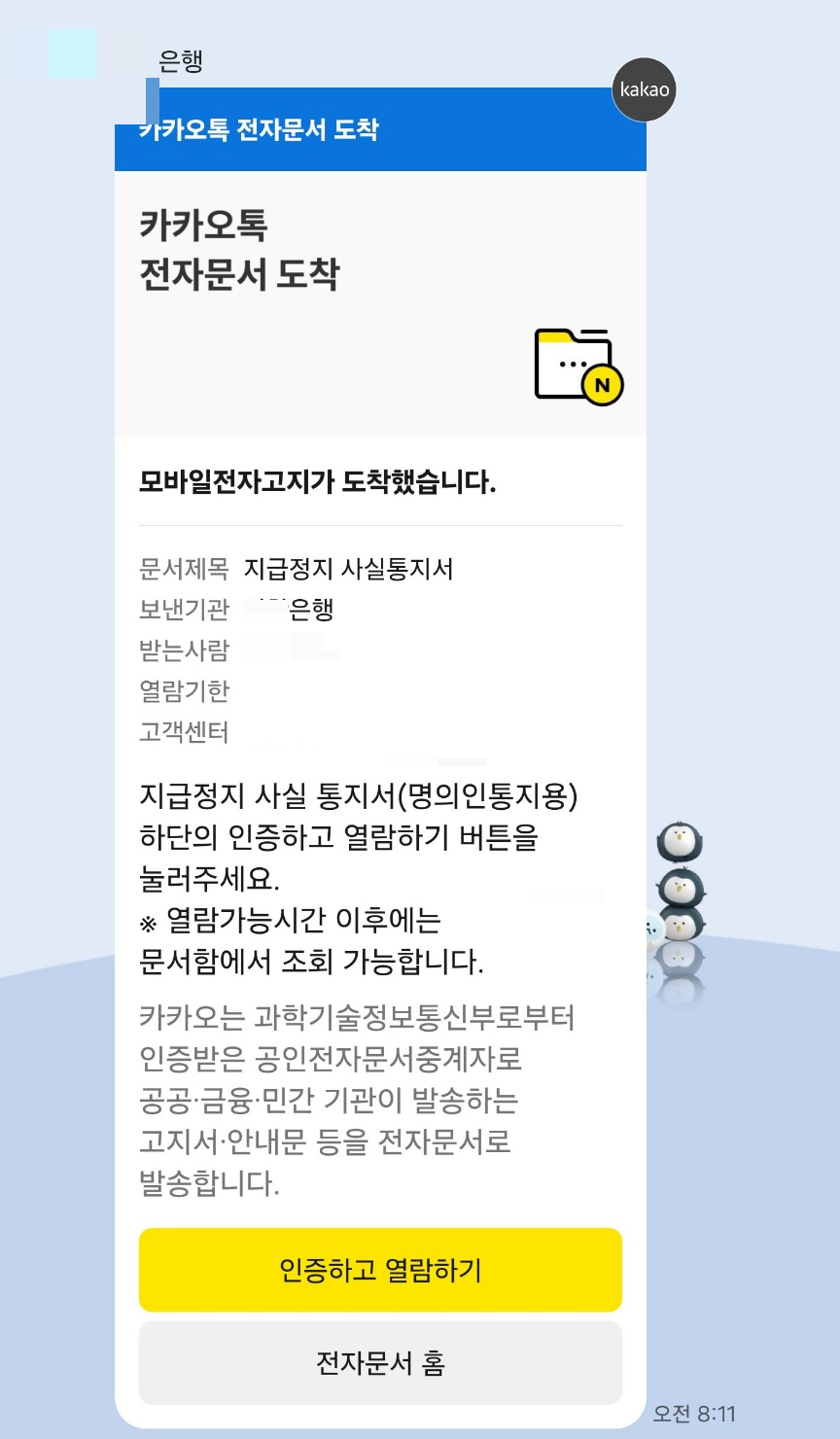 하나둘씩 지급정지 문서 혹은 카톡이 오기시작했습니다.