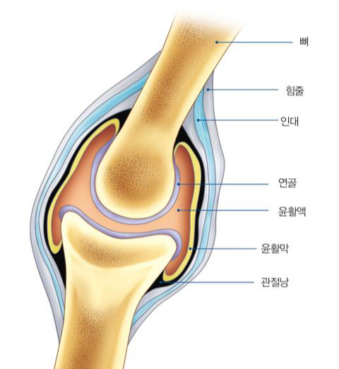 관절은 두 뼈가 맞닿는 부위에 구성이 되는데요.